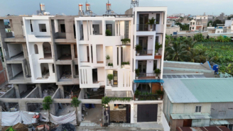 - Căn đầu tiên hoàn thiện trong dãy 8 căn nhà phố mới đang được xây dựng đồng bộ.