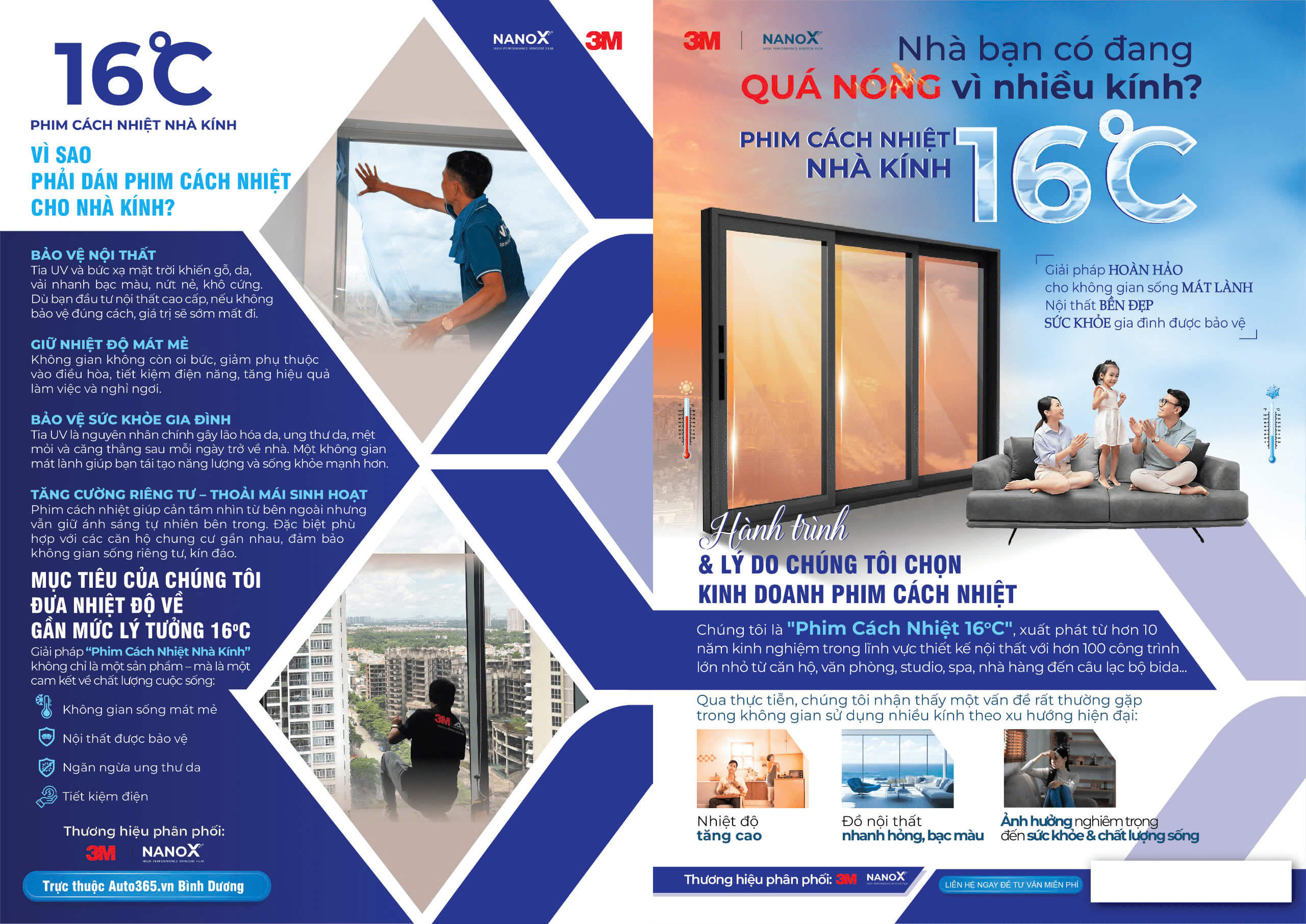 Phim cách nhiệt Nanox và 3M là hai thương hiệu nổi bật hàng đầu trong lĩnh vực chống nóng, bảo vệ kính và không gian sống. Được sản xuất trên nền tảng công nghệ tiên tiến đến từ Nhật Bản và Mỹ, các sản phẩm phim cách nhiệt không chỉ ngăn chặn sức nóng từ ánh mặt trời, mà còn mang lại vẻ đẹp hiện đại, riêng tư và tiết kiệm điện năng đáng kể.