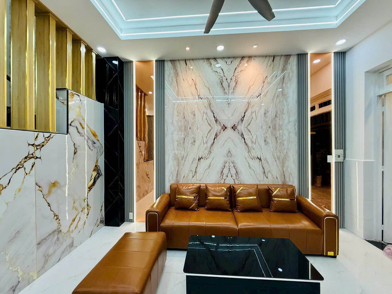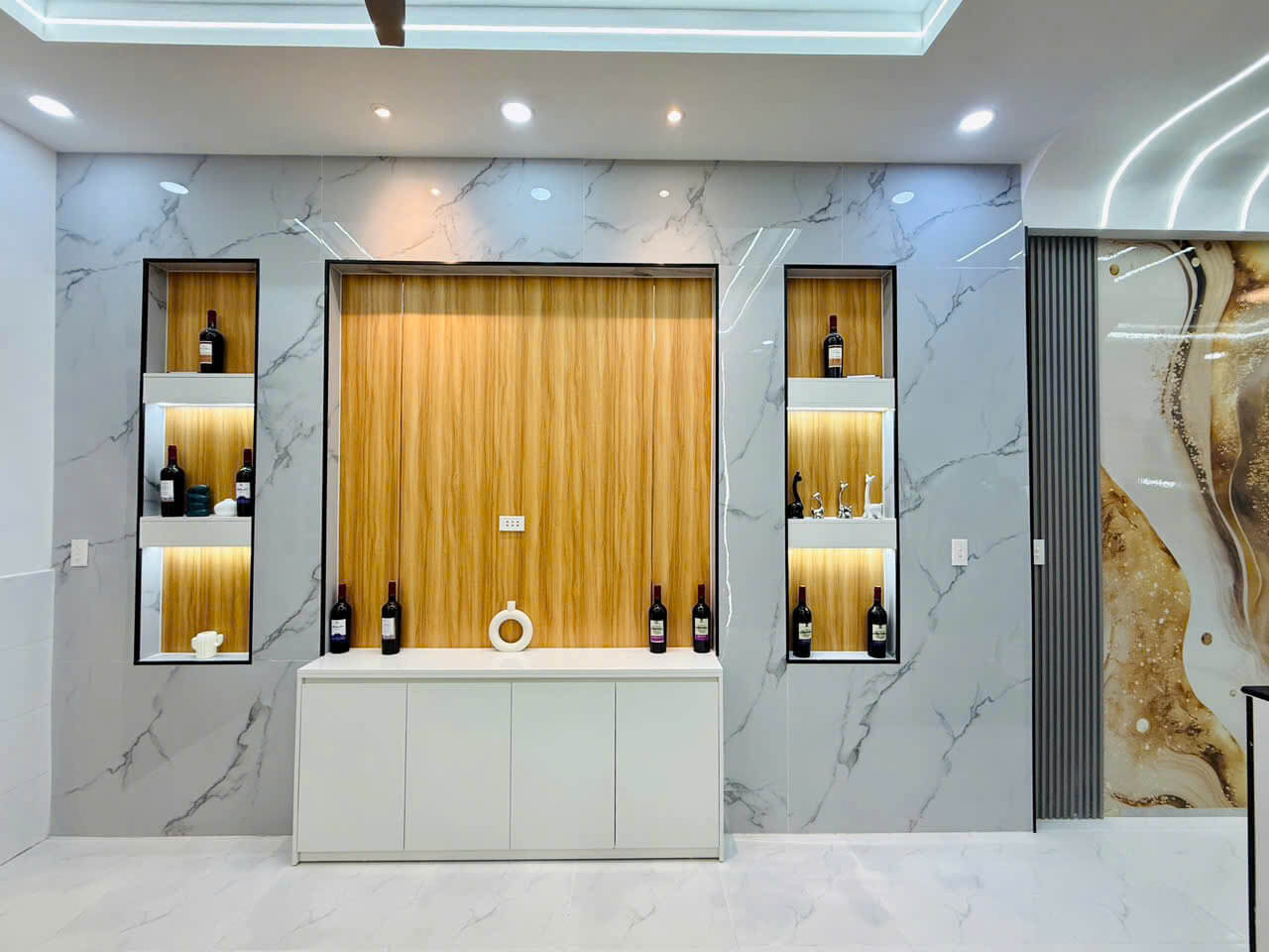 Kết cấu: 1 trệt 3 lầu, 4 phòng ngủ, 5 WC, phòng thờ riêng, sân thượng thoáng đón gió, có thang máy kính cao cấp